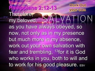 Philippians 2 12 13 Therefore My Beloved As You Have Always Obeyed So Now Not Only As In My Presence But Much More In My Absence Work Out Your Own Ppt Download